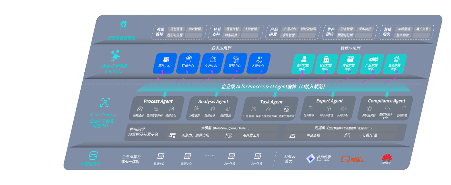 壹号娱乐问学智车解决方案是一套基于AI技术的汽车行业智能化系统,,,覆盖从底层算力到顶层AI应用的全栈方案。。。方案由算力层、、、、模型层和应用层组成:算力层,,,方案支持多种一体机配置,,,,具备云端灵活部署、、多云适配以及动态优化计算资源的能力;模型层,,,壹号娱乐问学平台版提供了企业级AI应用一站式构建与管理平台,,,支持基于后训练强化技术的汽车企业专属模型的训练、、、、评测和运营;应用层,,,壹号娱乐问学DeepSeek版提供包括超级员工、、、智能招采、、、智能营销、、智能客服、、AI for BI等一系列解决方案,,,,可助力汽车行业实现数字化转型,,让管理更智能、、、响应更敏捷。。